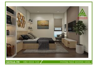 Phòng ngủ master được thiết kế với tone màu trầm ấm, tạo cảm giác gần gũi và ấm cúng. Được thiết kế với đầy đủ vật dụng tiện nghi.