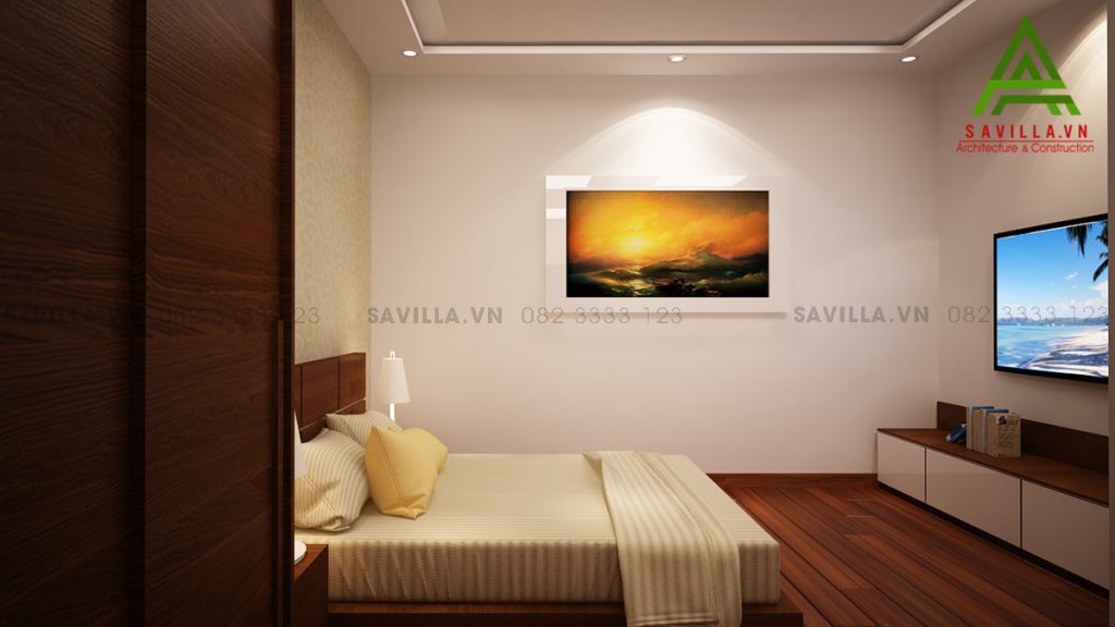 Thiết kế phòng ngủ dành cho khách đẹp và hiện đại với giường gỗ loại cao cấp. Mặc dù trông rất đơn giản nhưng lại toát lên sự sang trọng cho không gian nghỉ ngơi. Sàn gạch tô điểm cho không gian nghỉ ngơi thêm ấm cúng. Bên cạnh đó, việc sắp xếp phòng ngủ gọn gàng và tinh tế từ cách lựa chọn màu sắc đến sắp xếp nội thất đa năng tiện ích. Không gian phòng ngủ dành cho khách sang trọng bố trí nội thất tiện nghi, không gian rộng rãi lối đi thông thoáng.